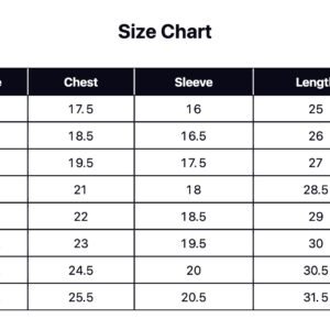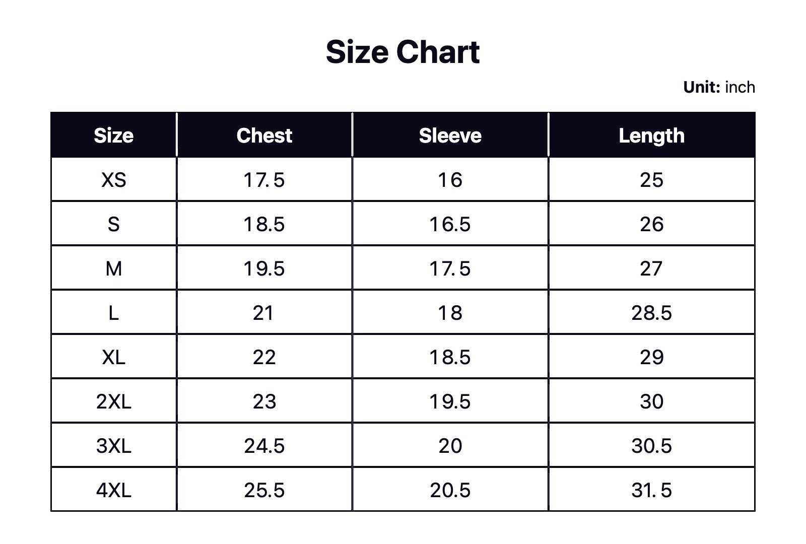 | Size | Chest(cm) | Sleeve(cm) | Length(cm) |