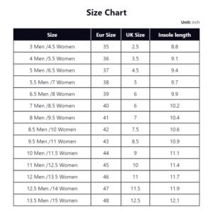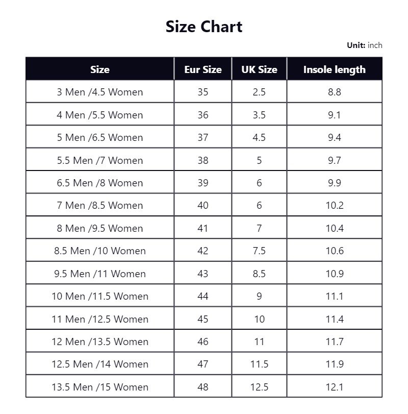 | US size | Eur Size | Insole length(mm) |
