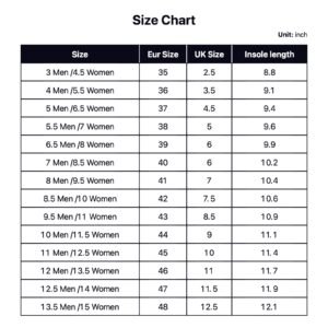| US size | Eur Size | Insole length(mm) |
