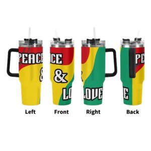 Personalized 40oz Stainless Steel Tumbler With Black Handle and Straw-Peace&Love